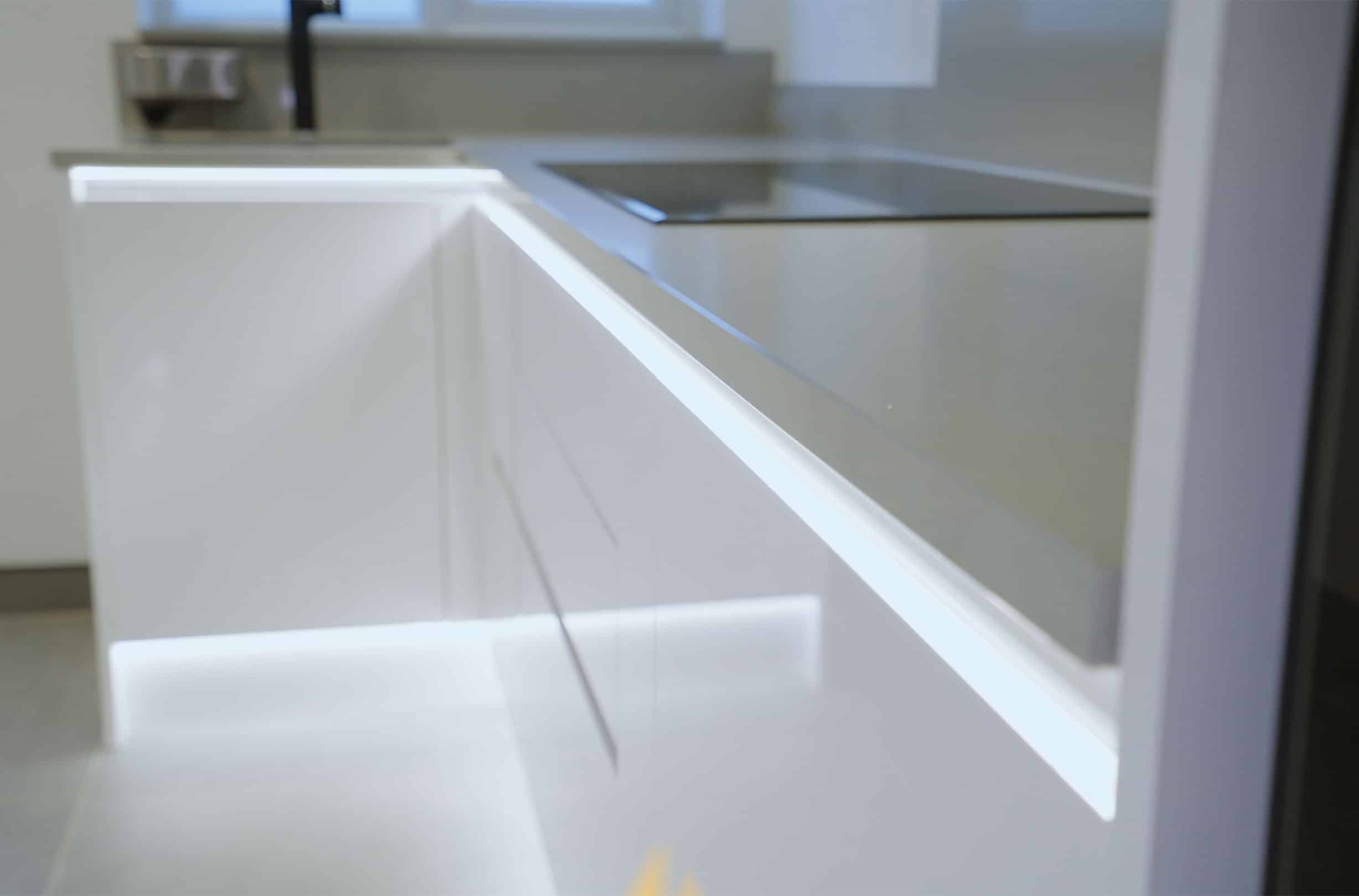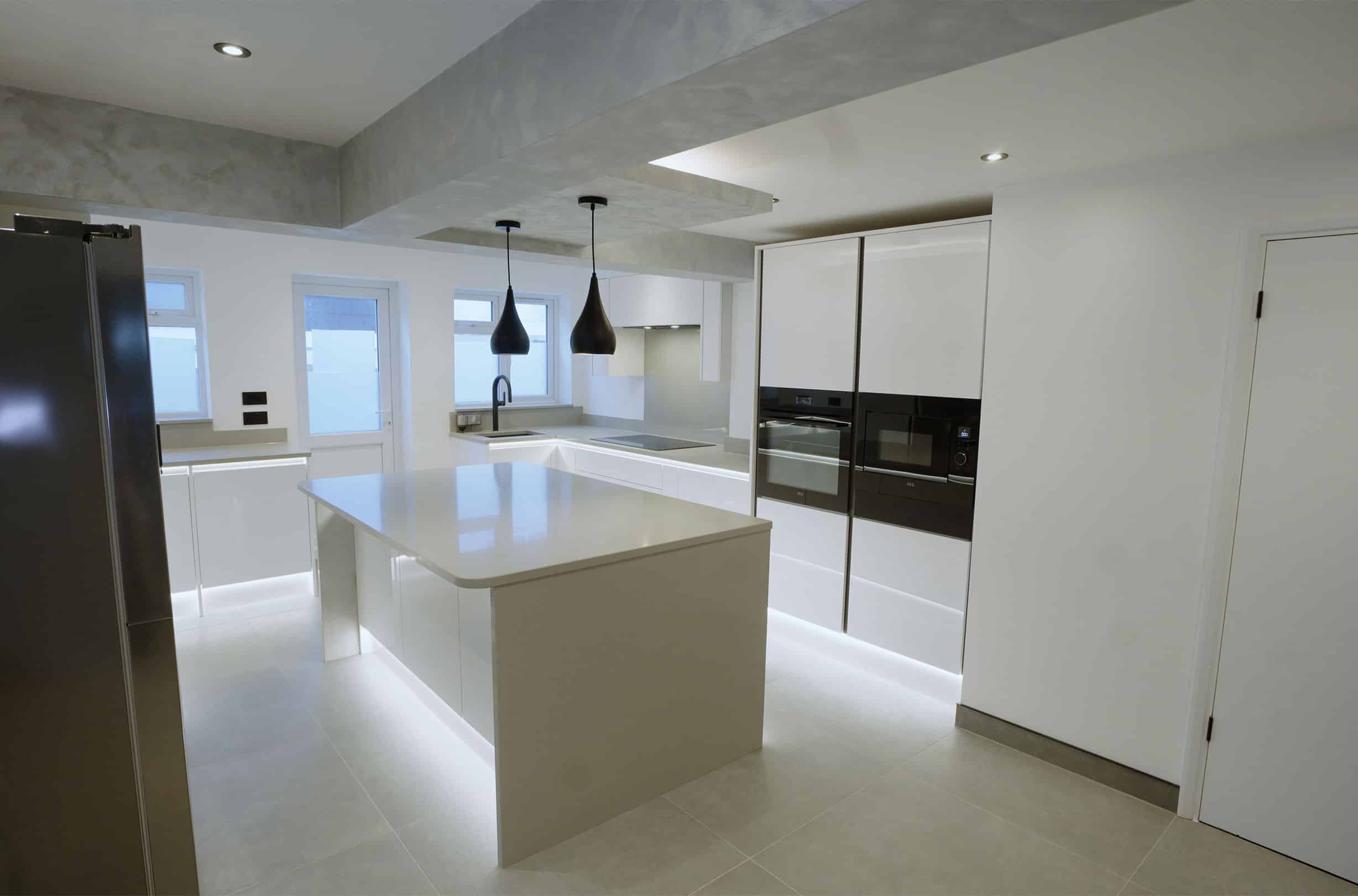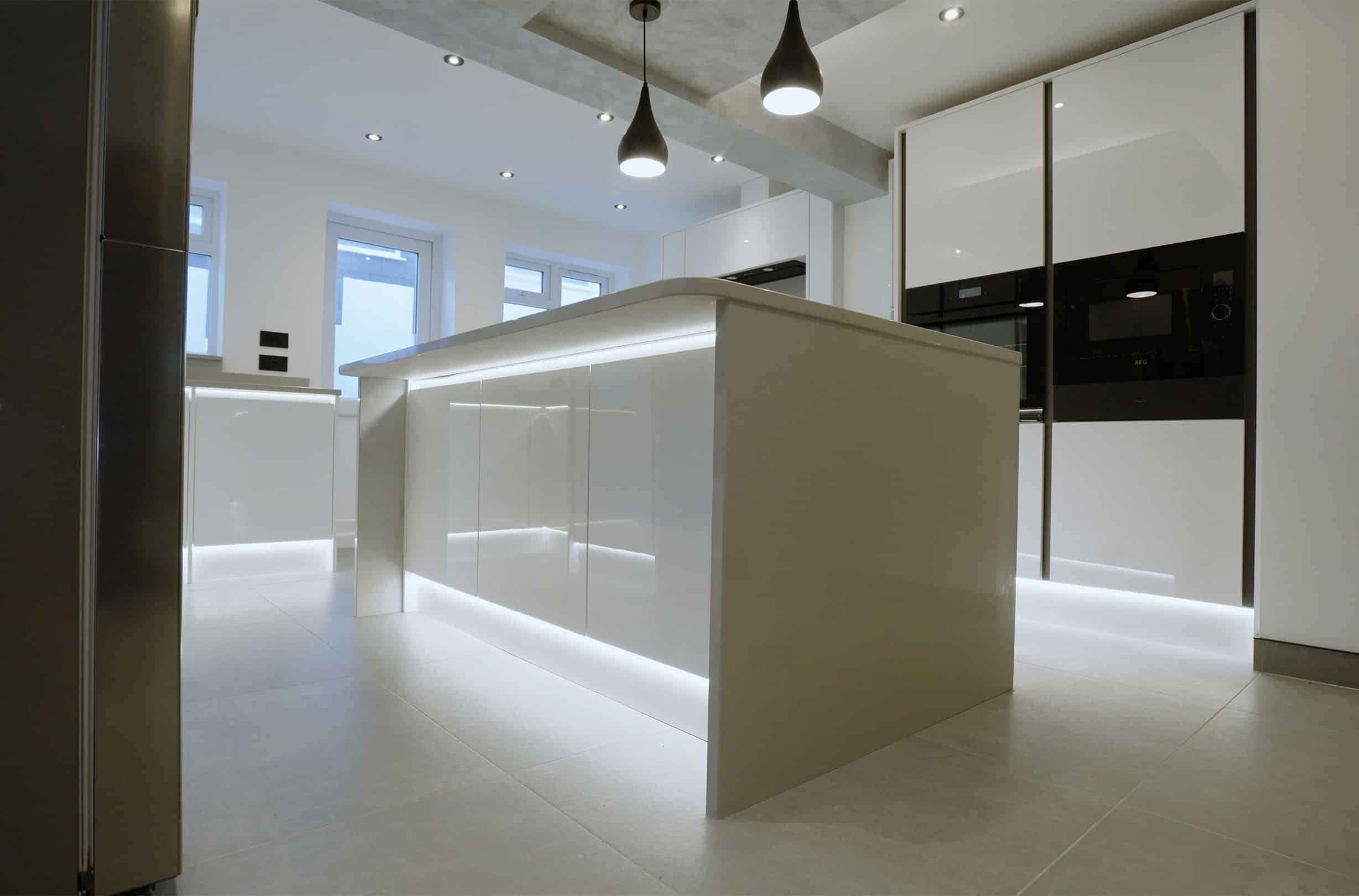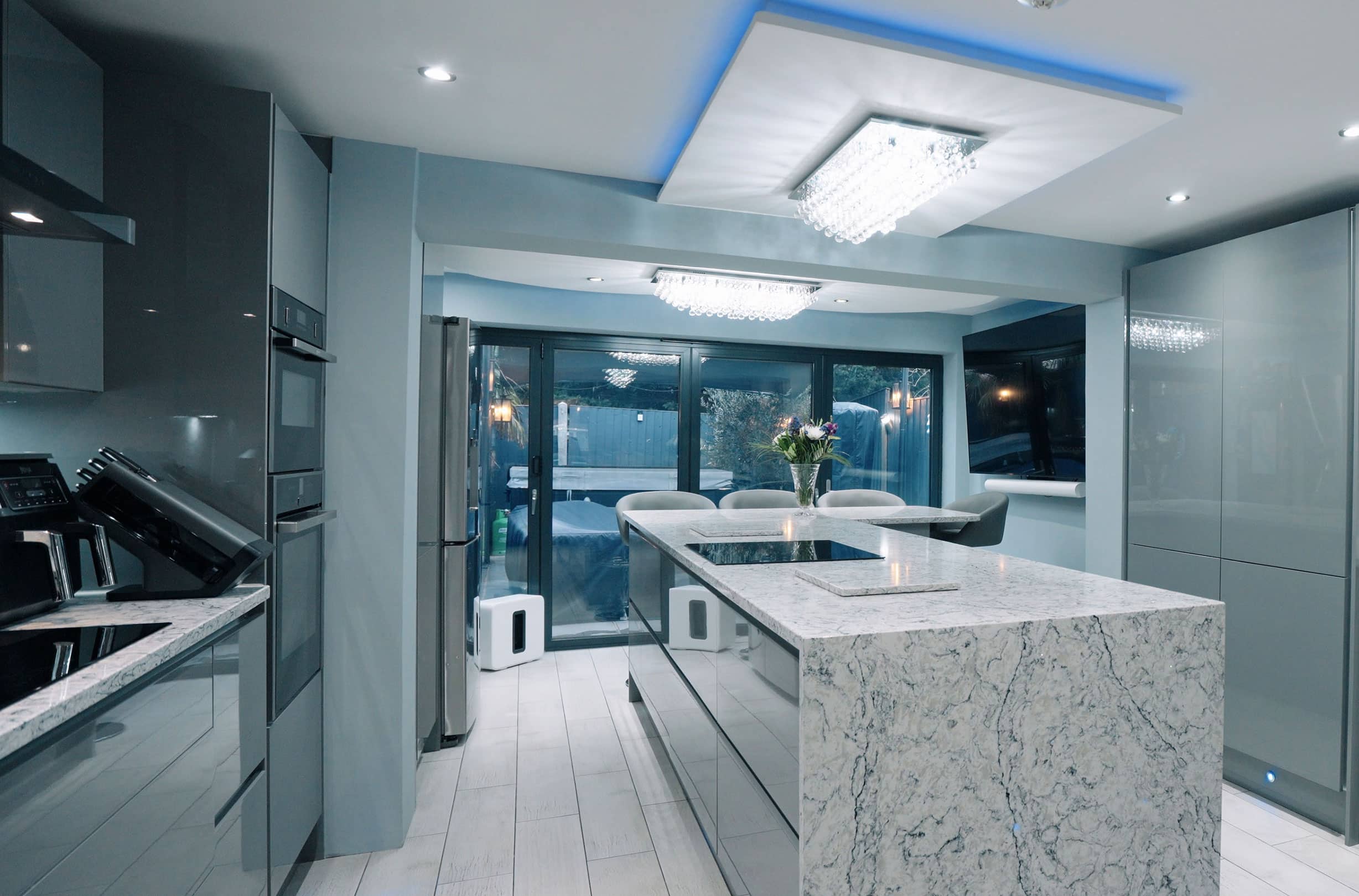 Yes, sustainability is central to our design philosophy. We offer numerous eco-friendly options, including FSC-certified timber, recycled materials, water-efficient fixtures, and energy-optimised appliances. Our cabinetry uses formaldehyde-free components and low-VOC finishes for improved indoor air quality. We can incorporate recycling and composting solutions into your design and recommend energy-efficient lighting systems to reduce environmental impact.